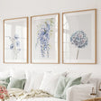 Set of 3 Blue Watercolor Minimalist Flowers Prints
