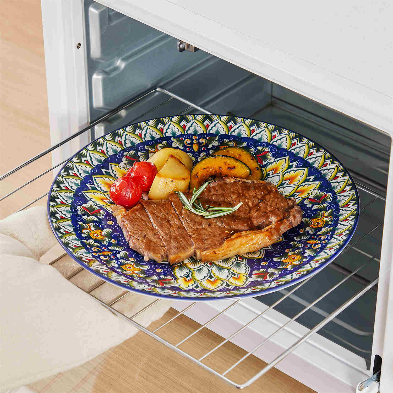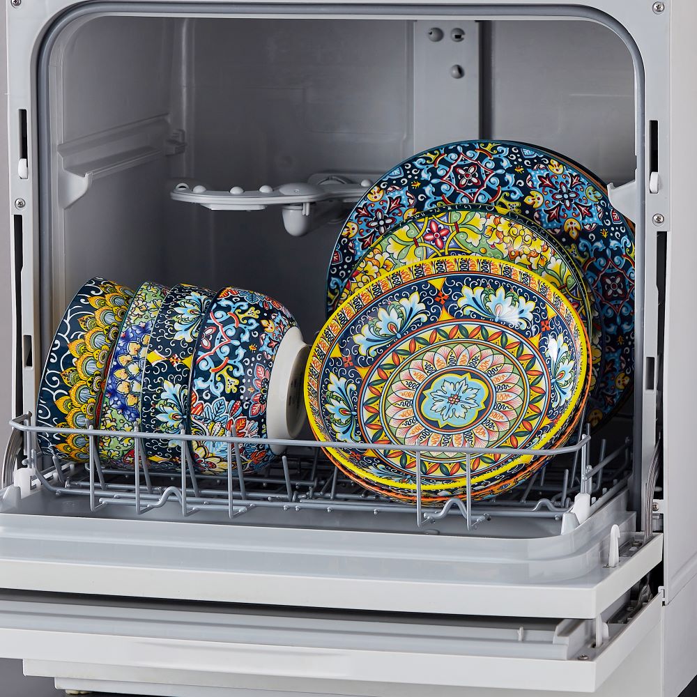 This 24-piece dinnerware set showcases six stunning Bohemian-inspired patterns in rich shades of navy, golden yellow, vibrant red, green, and orange. The plates feature bold floral and geometric designs, while the double-sided cereal and pasta bowls add extra charm with intricate interior and exterior details. Crafted from premium porcelain with a sleek glaze, this set serves six and is microwave, oven, and dishwasher safe—combining everyday practicality with artistic elegance.