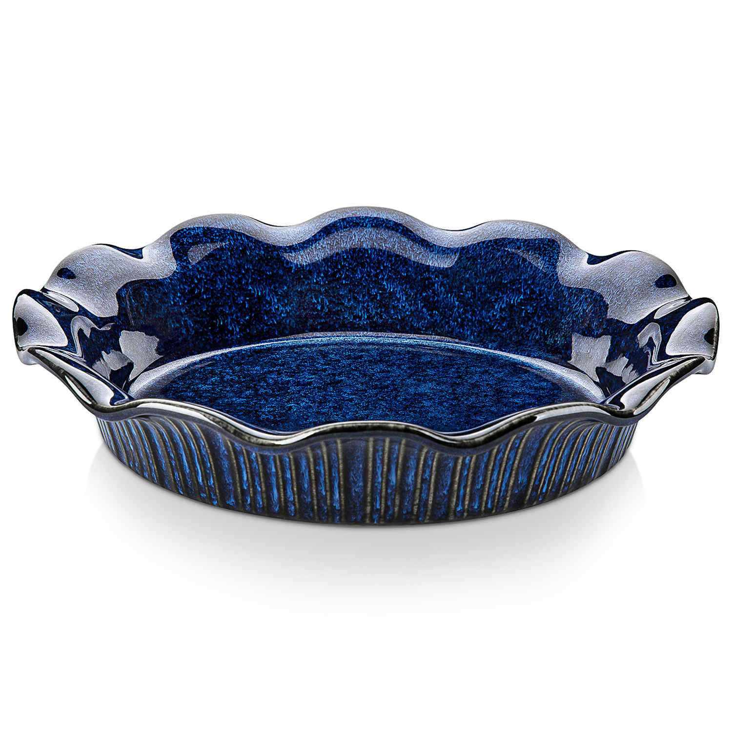 Featuring a distinctive reactive glaze, this 10.2-inch wide and 1.9-inch deep pie pan adds farmhouse charm to your kitchen. Ideal for classic French pies, quiches, and tarts, it is loved by households across Europe and America. Its retro-inspired fluted design enhances visual appeal, making it a standout on your table. Crafted from high-temperature firing stoneware, it offers exceptional durability, heat resistance, and environmental benefits. Safe for microwave, oven, and dishwasher use, it's easy to clean and resists scratches and stains. The Stern Pie Pan ensures even heating for gentle baking and browning, with a non-porous surface that preserves food flavors and prevents odors—perfect for apple, pecan, or pumpkin pies.