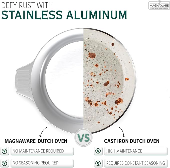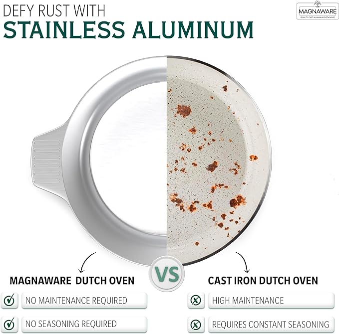 - Level Up Your Culinary Arsenal - Cook up a storm with Magnaware lightweight, rustproof aluminum stock pots! Made from durable cast aluminum with silicone handles included, our cookware makes cooking easier and more enjoyable.