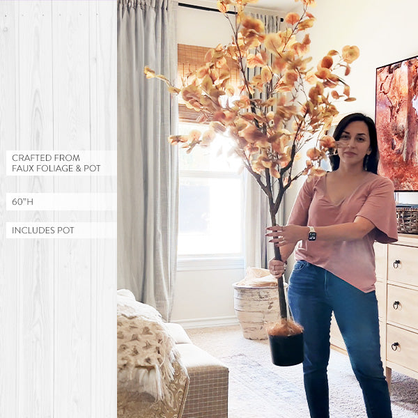 Introducing our stunning Tall Lifelike Eucalyptus Potted Tree, inspired by our best-selling Tall Lifelike Eucalyptus Potted Tree! Now with gorgeous foliage, this tree brings the warmth and beauty of nature into your home. Whether you’re sprucing up your entryway or adding a seasonal touch to your living room, bedroom, bathroom, or office, this tree will instantly transform any space with its natural charm.