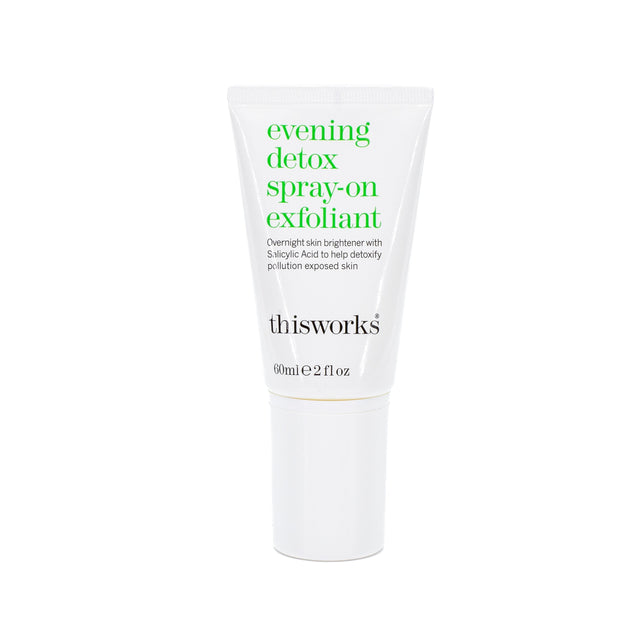 Treat dull, lack-luster skin to this works Evening Detox Spray-On Exfoliant; a leave-on, antioxidant-rich formula developed for use after day time exposure to pollution and environmental stresses. Harnessing the powers of Salicylic Acid and anti-bacterial Witch Hazel, the non-greasy spray exfoliator targets a range of common skin concerns, including blemishes, breakouts, blocked pores and fine lines and wrinkles, to promote a smoother, more refined complexion. Expect decongested, purified skin with improved tone and texture.