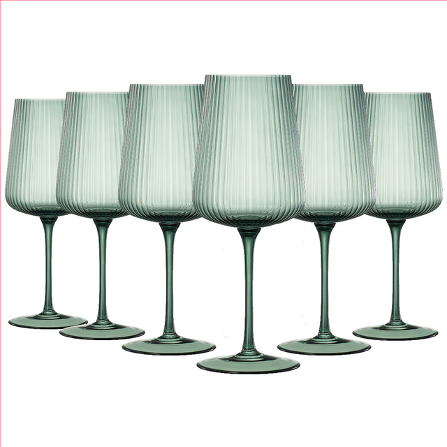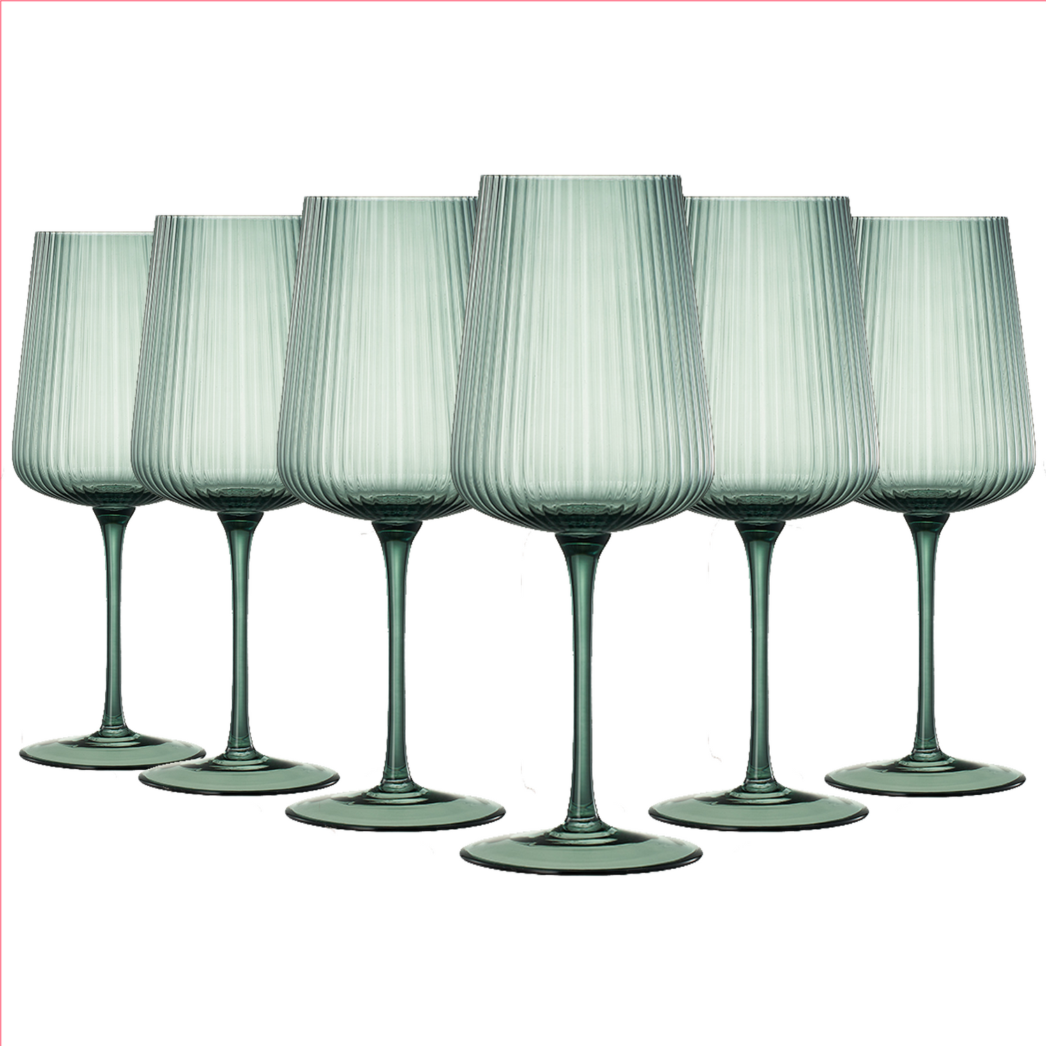 Tonal Ribbed Stemmed Wine Glassware, Set of 6. 9.4"H X 3.5"dia. 19 ounces.
