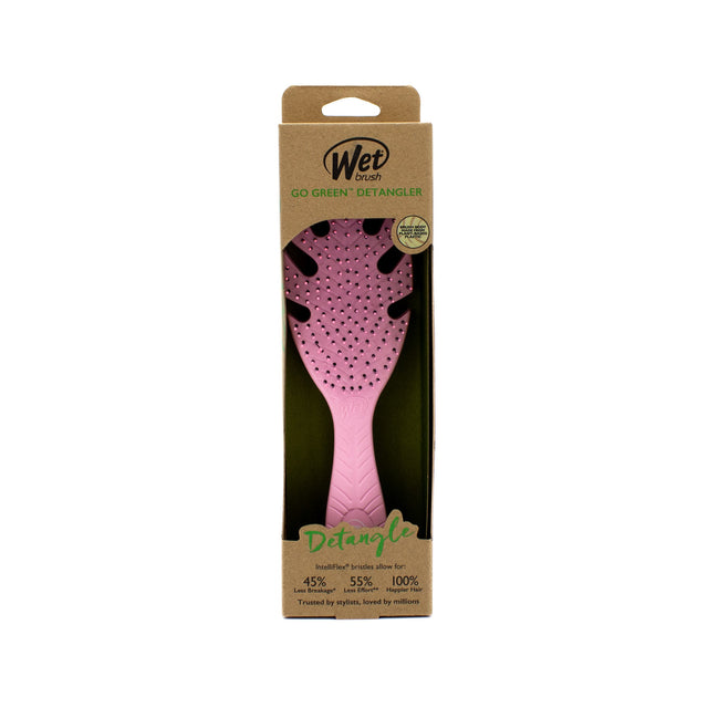 Meet the Wet Brush Go Green Detangler, a brush that helps hair stay strong and healthy! The Go Green Detangler gently loosens knots, on wet or dry hair, without pulling or snagging. Body of brush made of 56% plant based plastic.
